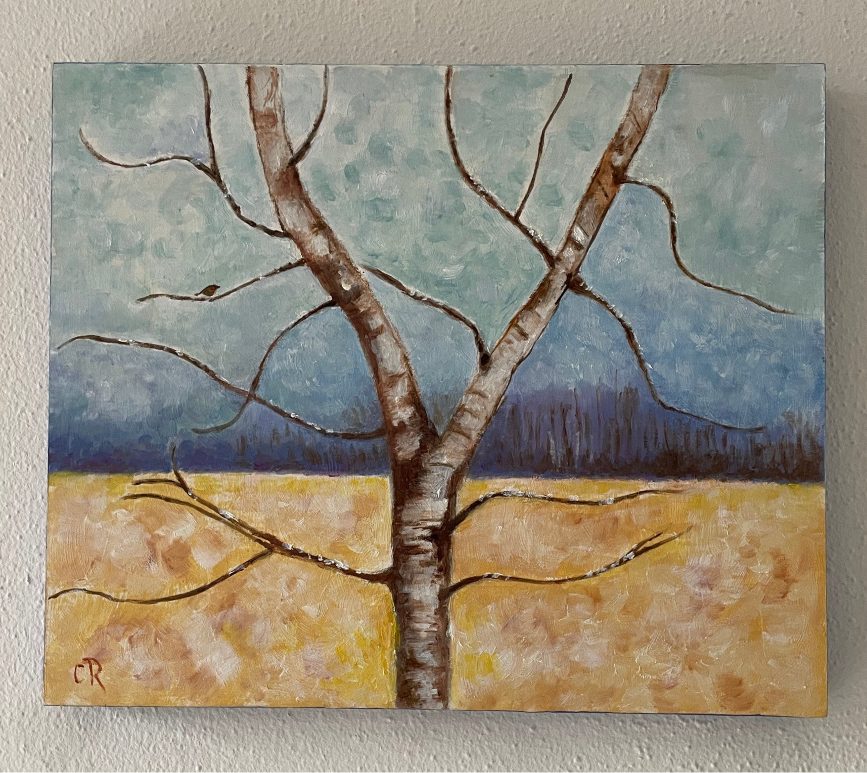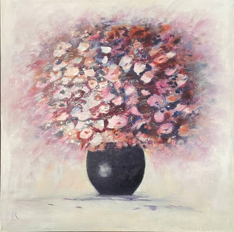 Bloemenvaas 50 x 50 cm Berk op paneel olieverf 30 x 25 cm